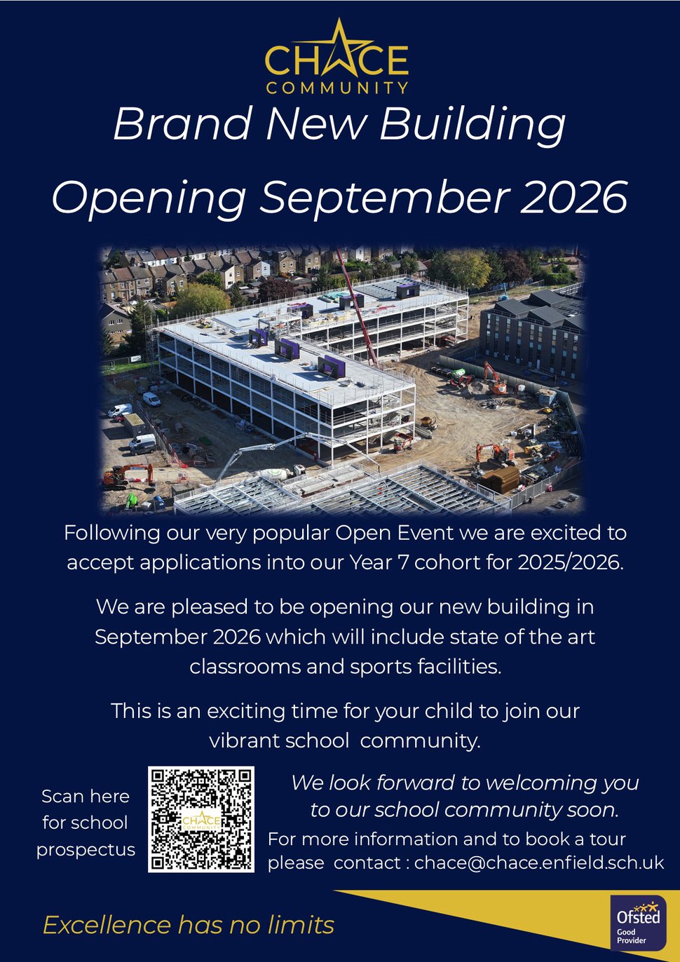 The new Chace Community School building is funded by the Department for Education Schools Rebuilding Programme and will provide us with a new 3-storey building with separate sports block.